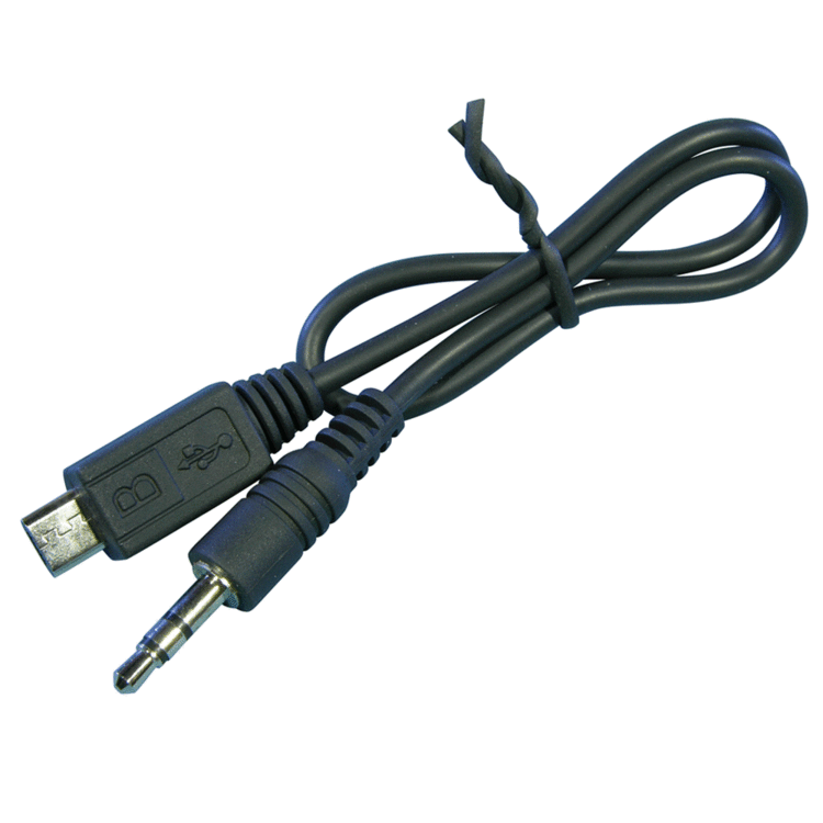 A short 25cm lead that converts from a microUSB plug to a 3.5mm audio jack plug to allow you to connect an audio device directly into the Phonak Roger Pen, Select or Roger Clip-on Mic transmitter.